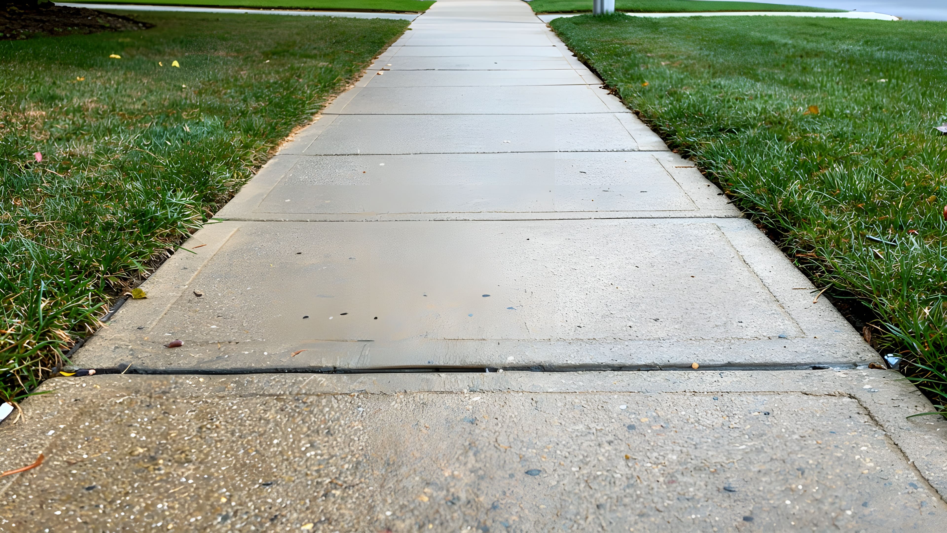 Leaves stuck to sidewalk after rain